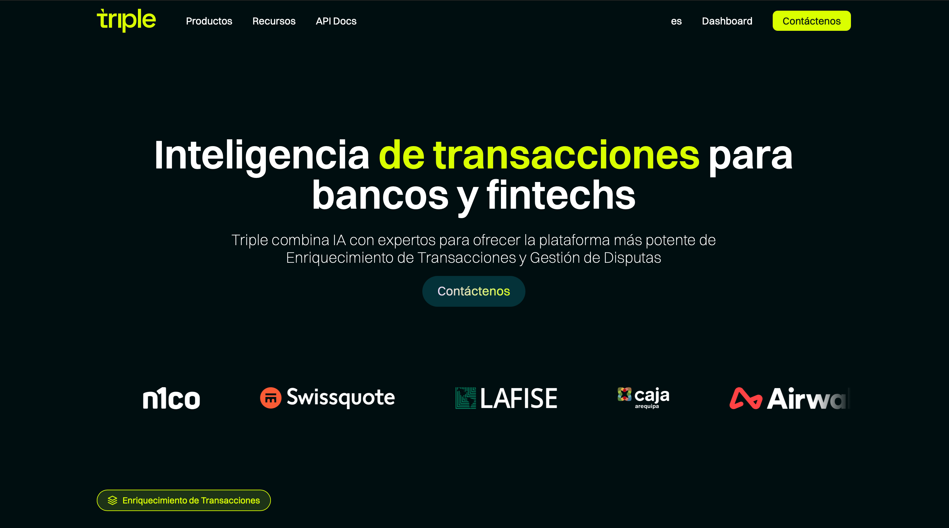 Hemos rediseñado el branding de Triple, una compañía londinense que fusiona IA y expertos para ofrecer la plataforma más avanzada de enriquecimiento de transacciones y gestión de disputas. Con cinco años de trayectoria en el Reino Unido, Triple cuenta con un equipo experimentado y el respaldo de más de 10 millones de dólares por parte de inversores líderes en el sector fintech.